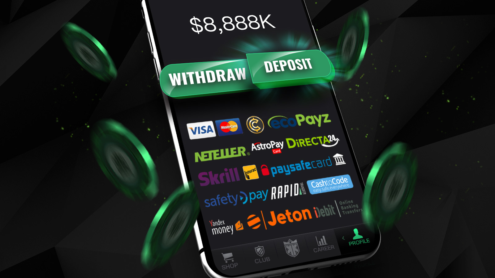 KKPoker has many deposit & withdrawal methods available to its worldwide player pool, including commonly used methods such as Debit/Credit Card, Skrill, Neteller, Ecopayz, and cryptocurrencies (Bitcoin etc.), CashtoCode, eVouchers and many more.