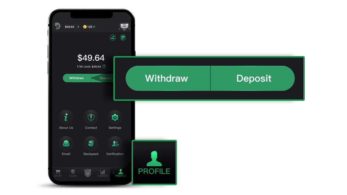 Select ‘‘Profile’ > ‘Deposit’