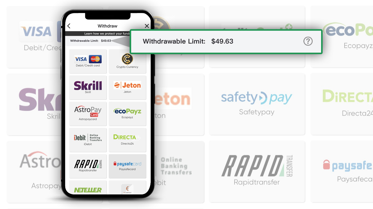 For example, if you have a $1,100 account balance, and your ‘Withdrawable Limit’ is $1,000, that is the maximum amount you can withdraw.