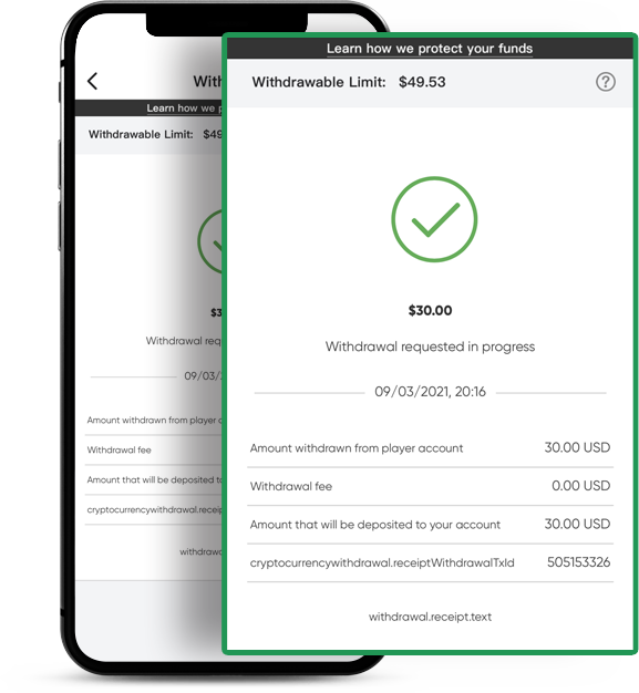 You will see the ‘in progress’ page after you’ve submitted the withdrawal request. Please allow no more than 24 hours for the withdrawal to be approved.